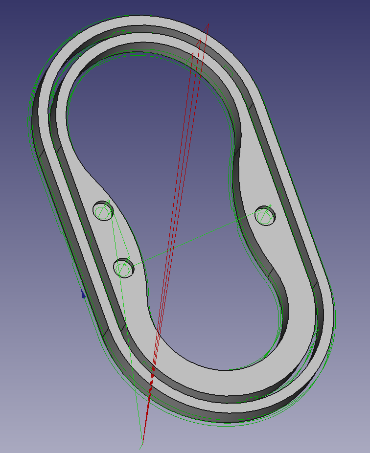 Preview of drafts for top and bottom of dust shoe. The upper part is clamped to the router and holds the dust collector pipe. The bottom is held by magnetes and can be removed and placed quickly. This allows changing the end mill with everything else staying in place.